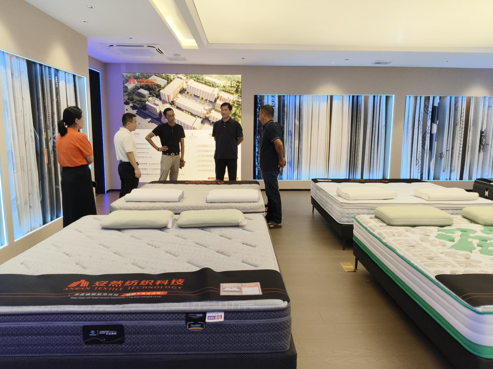 福建省安然紡織科技有限公司成立于2012年,注冊資金5888萬元,廠區占地200畝,建筑面積20萬平米,現有員工500多人,主要致力于3D材料、3D面料、針織提花面料、床墊、枕頭、軟床、沙發、餐桌椅等系列產品的研發、生產及銷售,是一家擁有自營進出口權的國家高新技術企業,產品遠銷國內外。